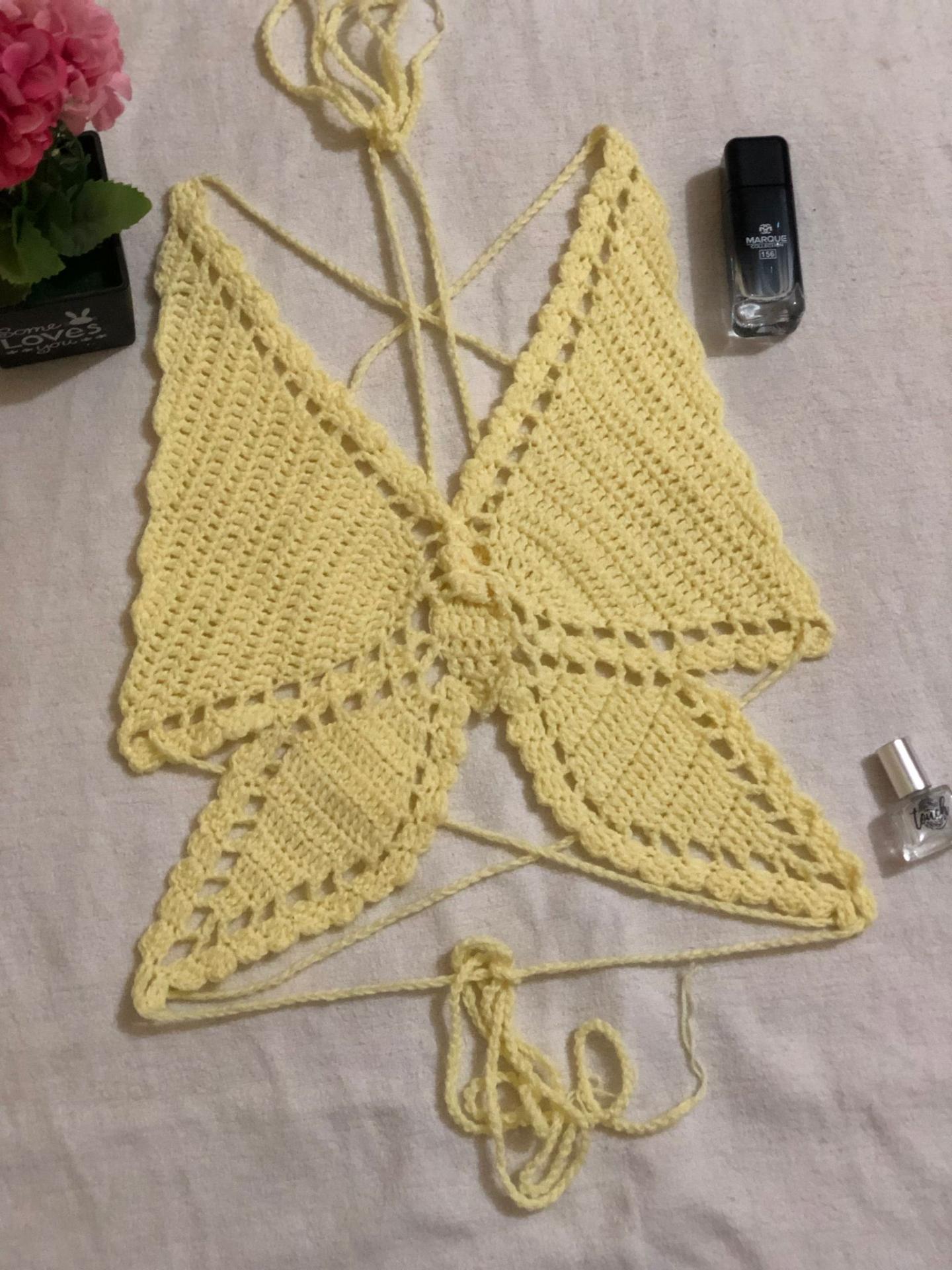 Découvrez le top papillon jaune 100% fait main de la Collection Summer : sa coupe et ses ailes courtes vous donneront un look féérique en toutes occasions. Elle est disponible en différents coloris et en différentes tailles.